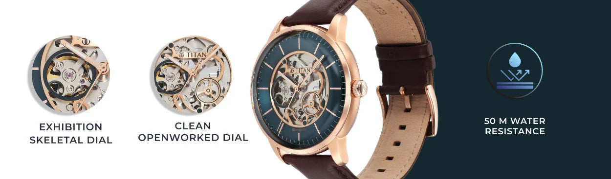 Titan Mechanical Green Dial Automatic watch for Men with Leather Strap