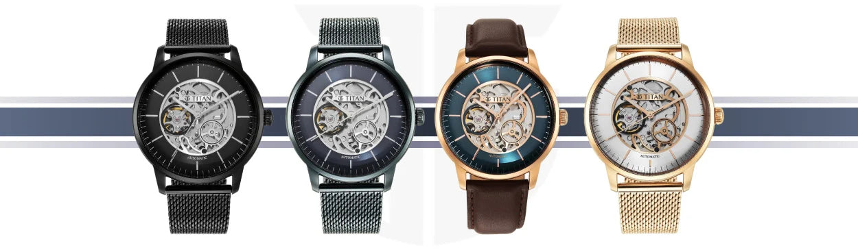 Titan Stellar Automatic Automatic Black Dial Stainless Steel Strap Watch for Men